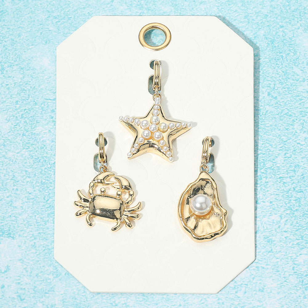 Details • Size : 1.6" L - 1.75" L • Bring seaside vibes to your accessories with this charm set featuring a pearl-studded starfish, a playful crab, and an oyster with pearl detail. Perfect for keychains, bracelets, or pendants, these nautical charms add a touch of coastal elegance to any style. • Lead and Nickel Compliant