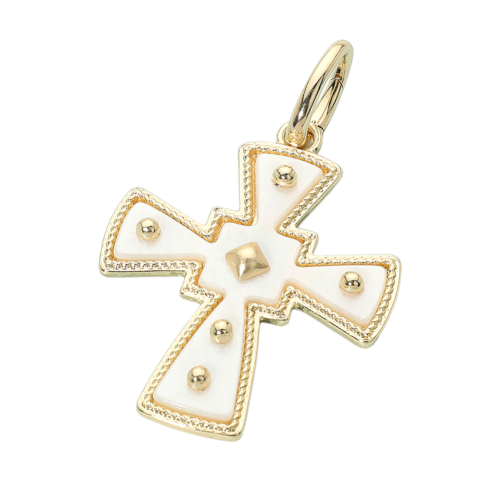Details • Size : 1.7" X 2.6" • Add a bold touch to your accessories with this decorative cross charm, featuring raised stud accents and a detailed silhouette. Ideal for personalizing bracelets, necklaces, or keychains, it brings a stylish statement to layered looks and everyday wear. • Lead and Nickel Compliant