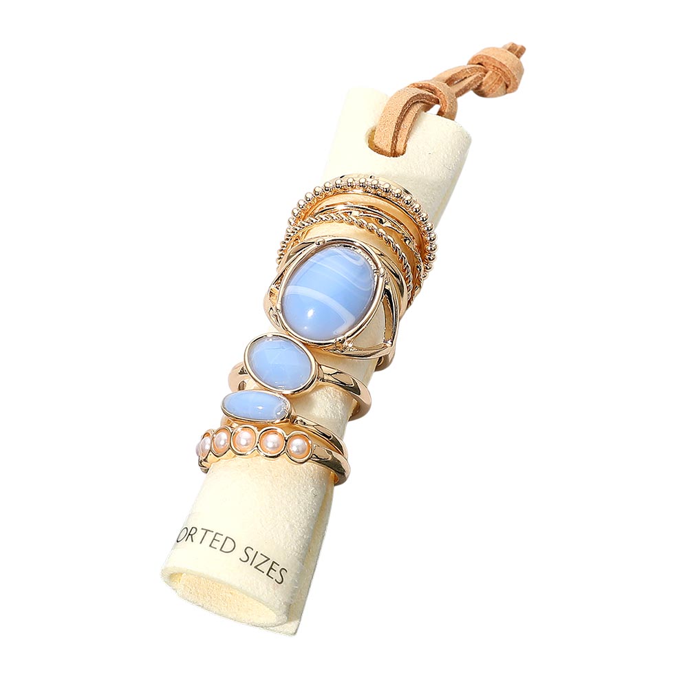 12PCS - Assorted Resin Stone Accent Pearl Link Textured Metal Stackable Ring Set