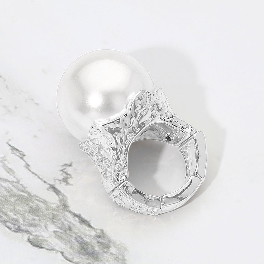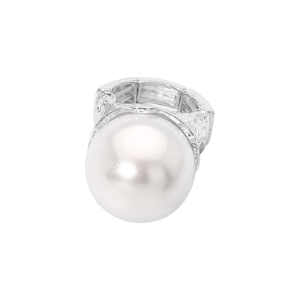 Bold Pearl Accented Metal Stretch Ring Bold Pearl Accented Metal Stretch Ring Bold Pearl Accented Metal Stretch Ring