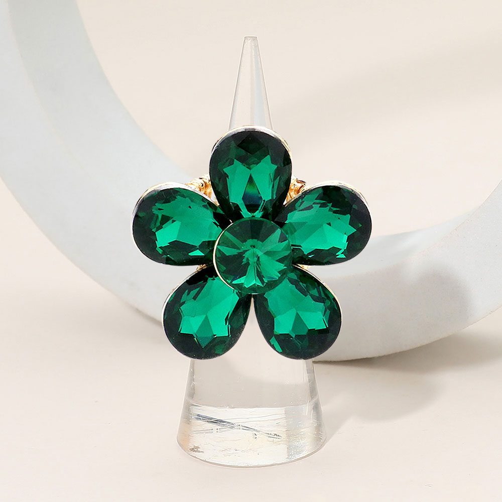 Details • Size : 1.5" H • Stretchable • Elegant flower-shaped statement ring featuring a dazzling faceted petal design that catches the light beautifully. Perfect for adding a bold, eye-catching accent to any outfit, this gem-inspired accessory enhances your style with its unique shape and sparkling radiance. • Lead and Nickel Compliant