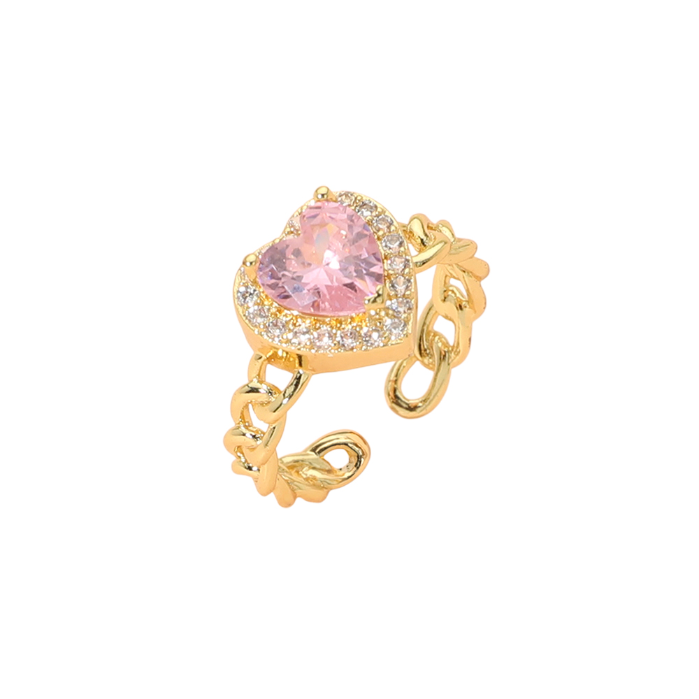 • Eye-catching adjustable ring featuring a bold heart centerpiece framed with sparkling stone details and a modern chain-inspired band. Designed to stand out on its own or pair with layered looks, this ring adds expressive charm to boutique jewelry collections and gift assortments.