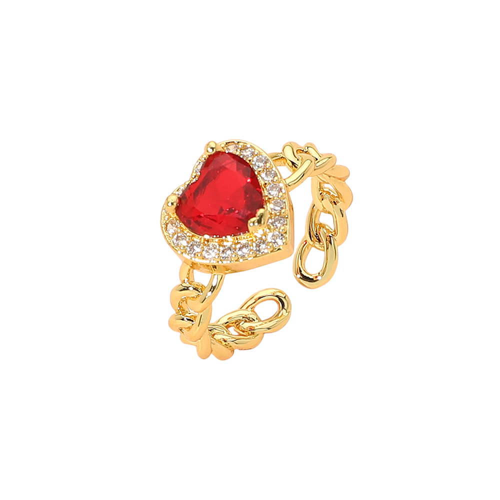 Heart CZ Stone Accent Adjustable Chain Ring Heart CZ Stone Accent Adjustable Chain Ring