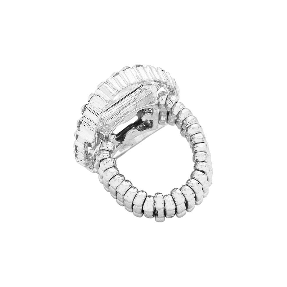 Square Stone Center Rhinestone Paved Rim Stretch Ring
