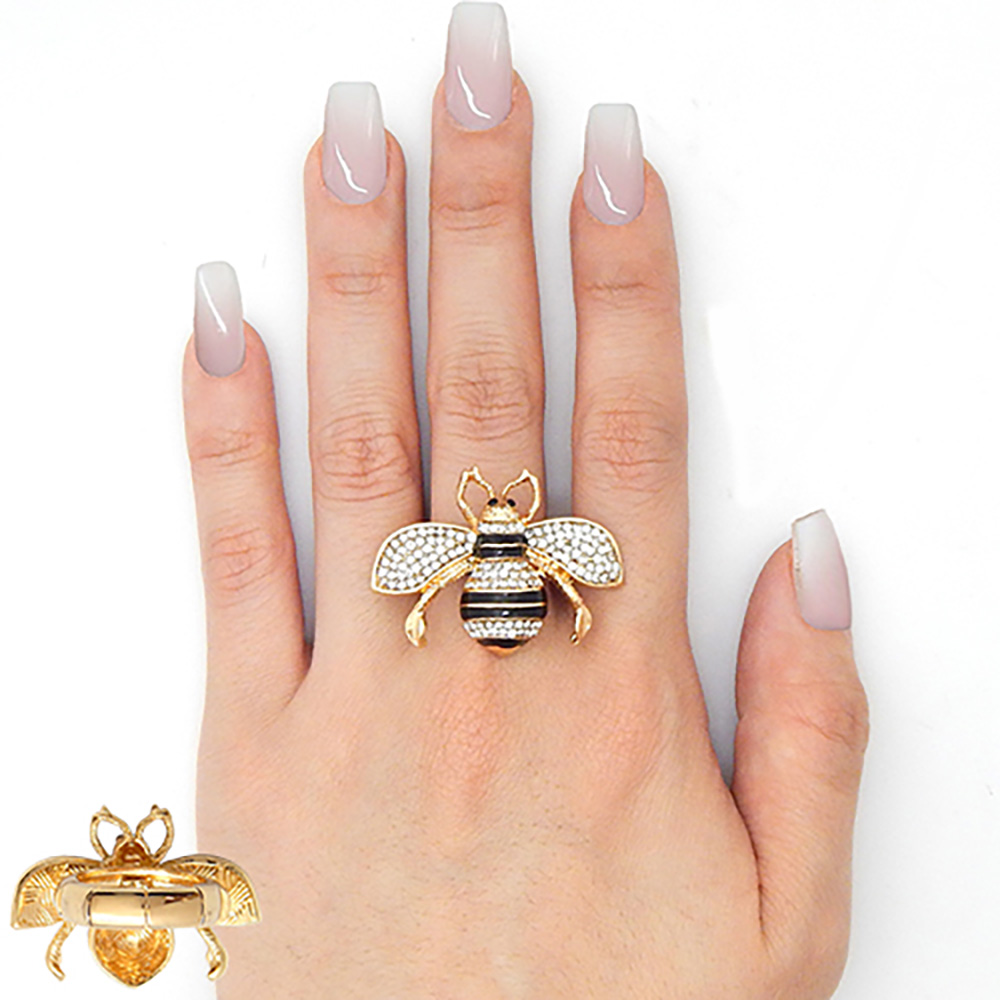 Rhinestone Embellished Honey Bee Stretch Ring
