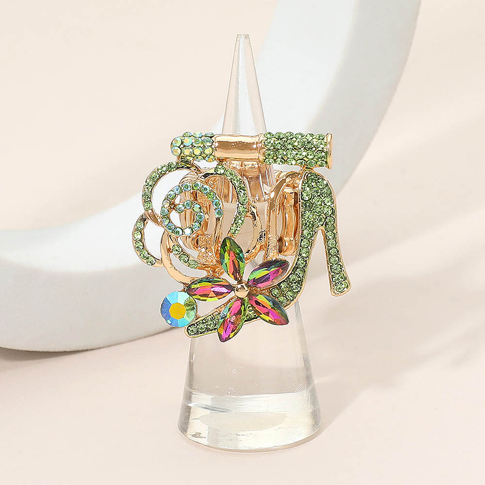 Rhinestone Embellished Flower Accent Glam High Heel Lipstick Pin Brooch