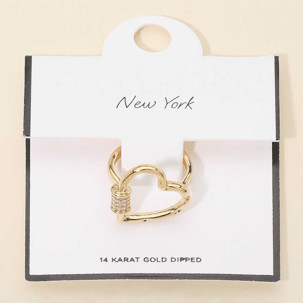 SECRET BOX_14K Gold Dipped Heart Carabiner Accent Adjustable Ring