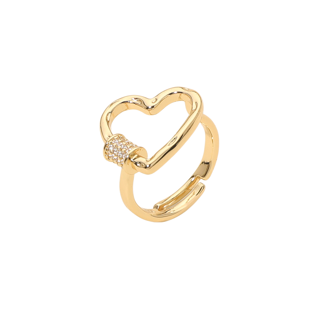 SECRET BOX_14K Gold Dipped Heart Carabiner Accent Adjustable Ring SECRET BOX_14K Gold Dipped Heart Carabiner Accent Adjustable Ring SECRET BOX_14K Gold Dipped Heart Carabiner Accent Adjustable Ring