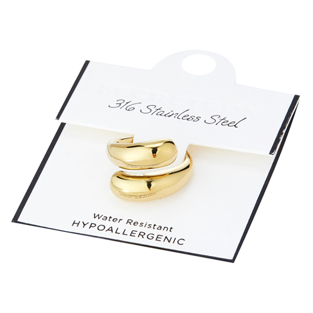 Details • Size : 0.6" H • Water Resistant • Sleek and modern stainless steel ring featuring a bold open-front design with smooth curved ends. Adjustable fit for versatile styling, ideal for minimalist looks or stacking with other rings for added flair. • Hypoallergenic • Stainless Steel