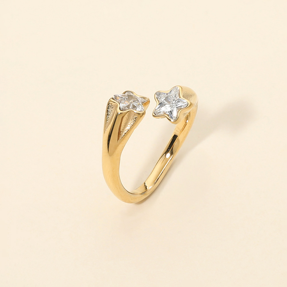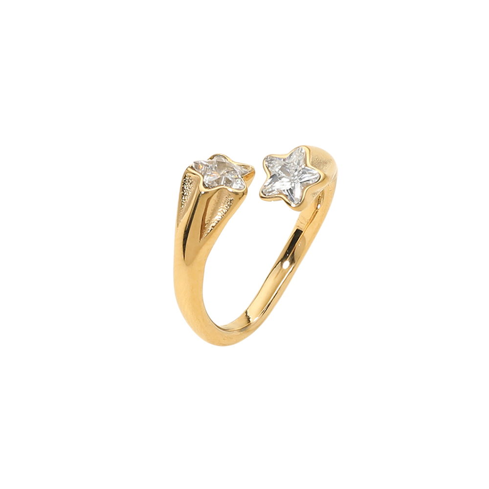 • Stylish open ring featuring two star-shaped accents for a modern celestial look. The adjustable open band offers a comfortable fit while adding subtle sparkle and dimension. A versatile fashion ring perfect for everyday wear, gifting, and boutique collections inspired by star and cosmic jewelry trends.