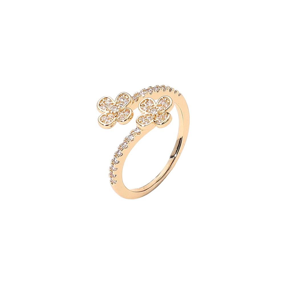 • Elegant adjustable ring featuring two sparkling quatrefoil designs for a feminine and stylish touch. Perfect for adding delicate charm to everyday wear or special occasions, this open-band ring offers comfort, shine, and timeless floral elegance.