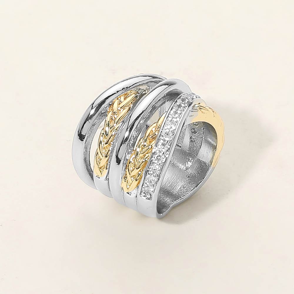 Bold Two Tone CZ Pave Multi Band Statement Ring