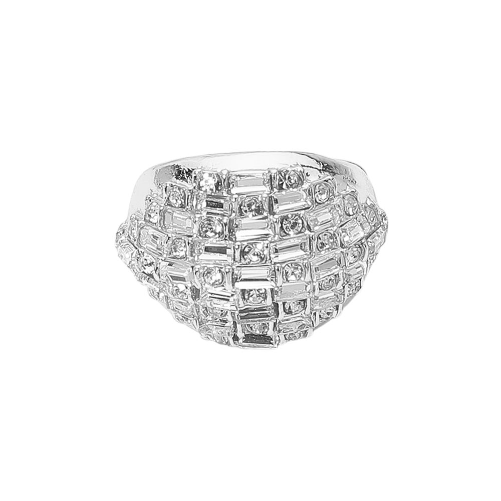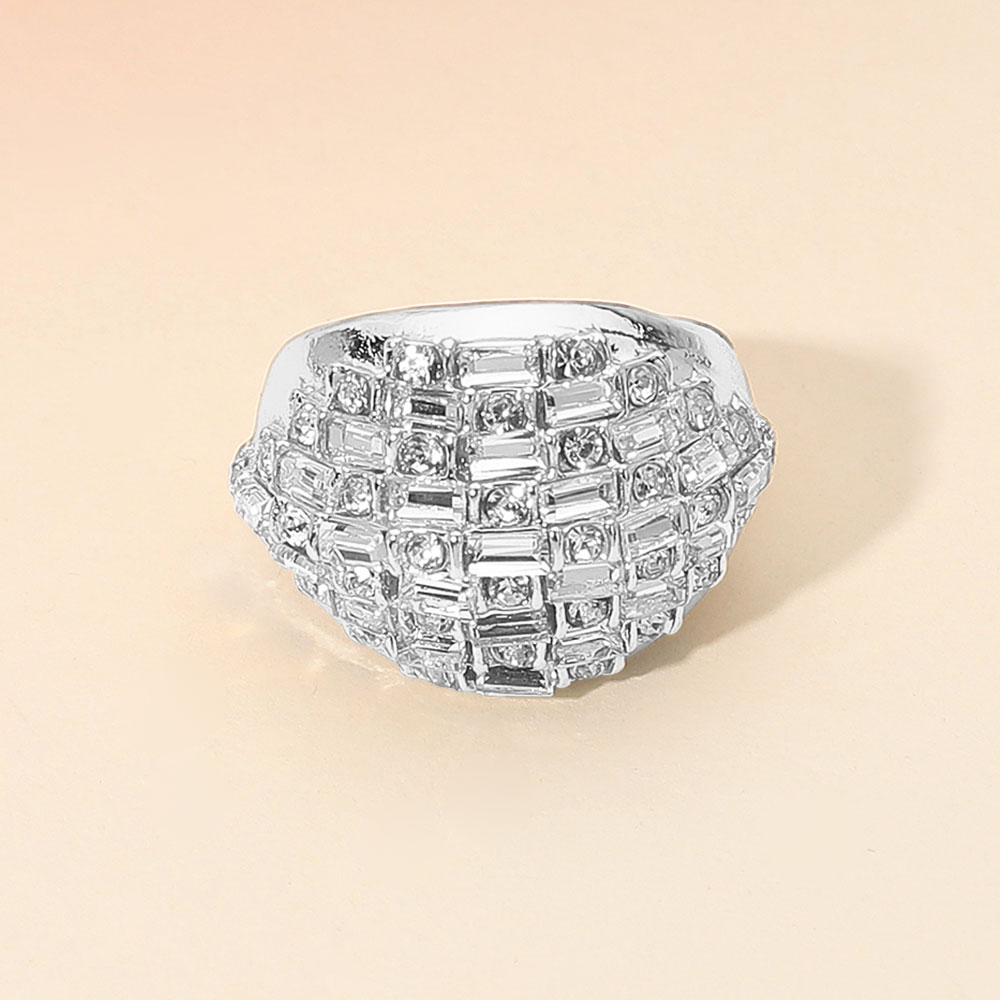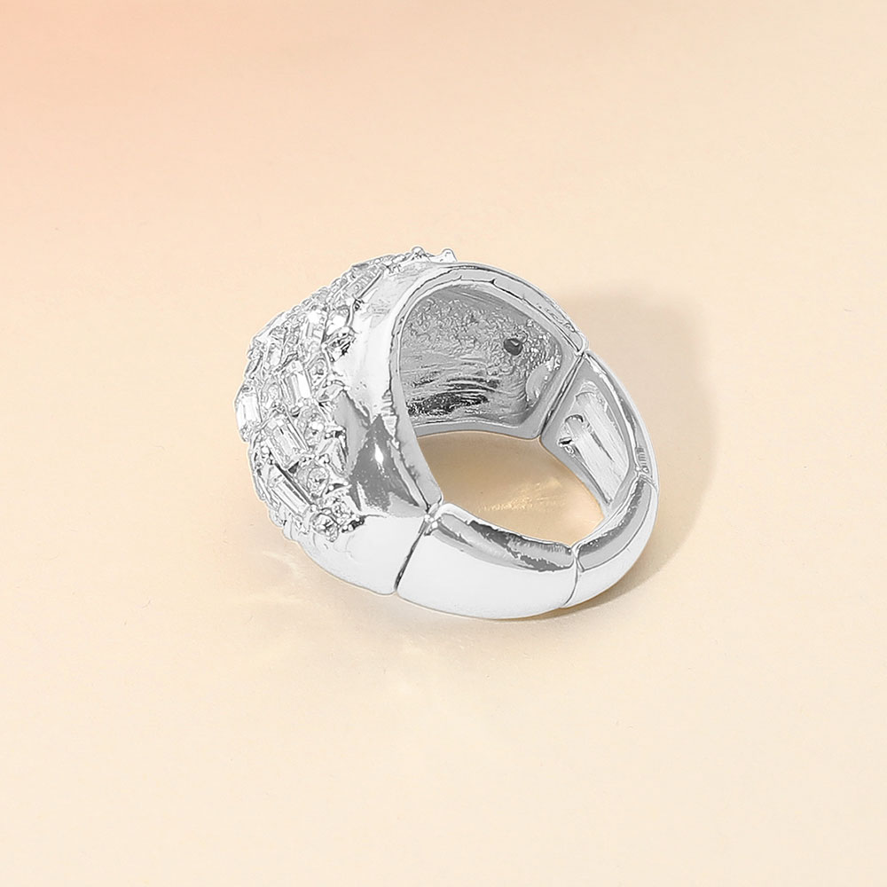 Checkered Pattern Baguette Stone Embellished Chunky Stretch Ring