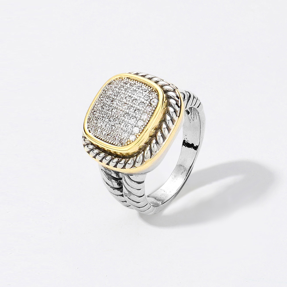 Details • Size : 0.6" H • Statement ring featuring a cushion-cut pave top with intricate rope detailing. A bold yet elegant accessory for refined everyday wear. • CZ Cubic Zirconia