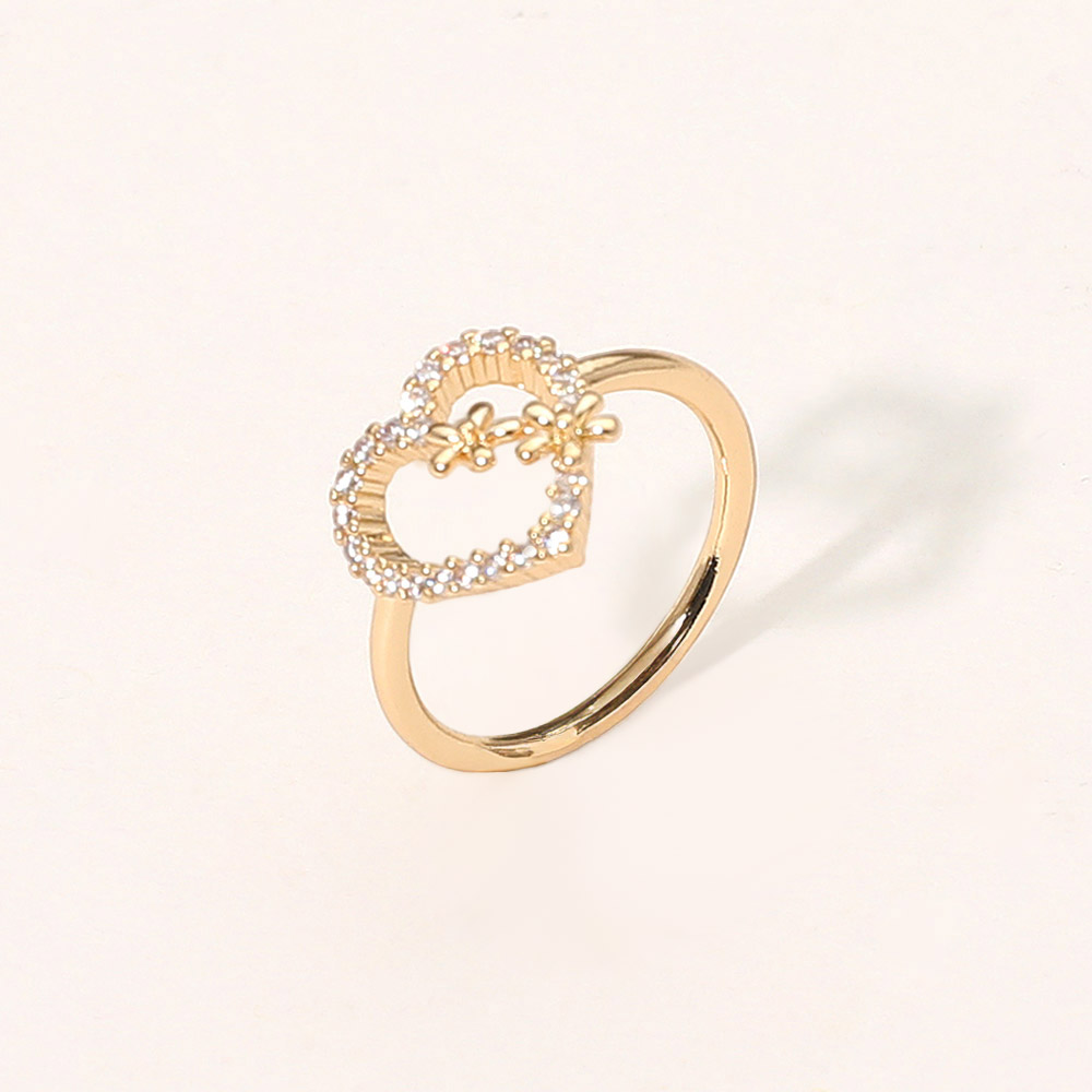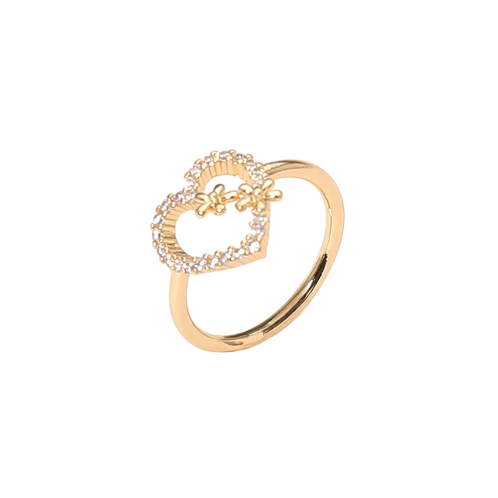 Details • Size : 0.5" H • Size 7 Only • Romantic adjustable ring featuring an open heart design adorned with shimmering crystal details and delicate floral touches. A timeless accessory that adds sparkle and elegance to any look, perfect for daily wear or as a charming gift for someone special. • Lead and Nickel Compliant • Brass