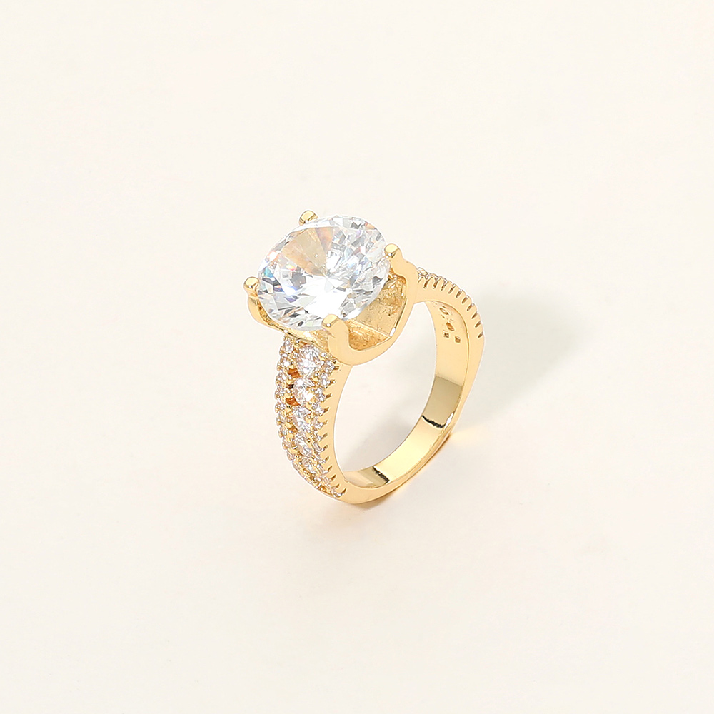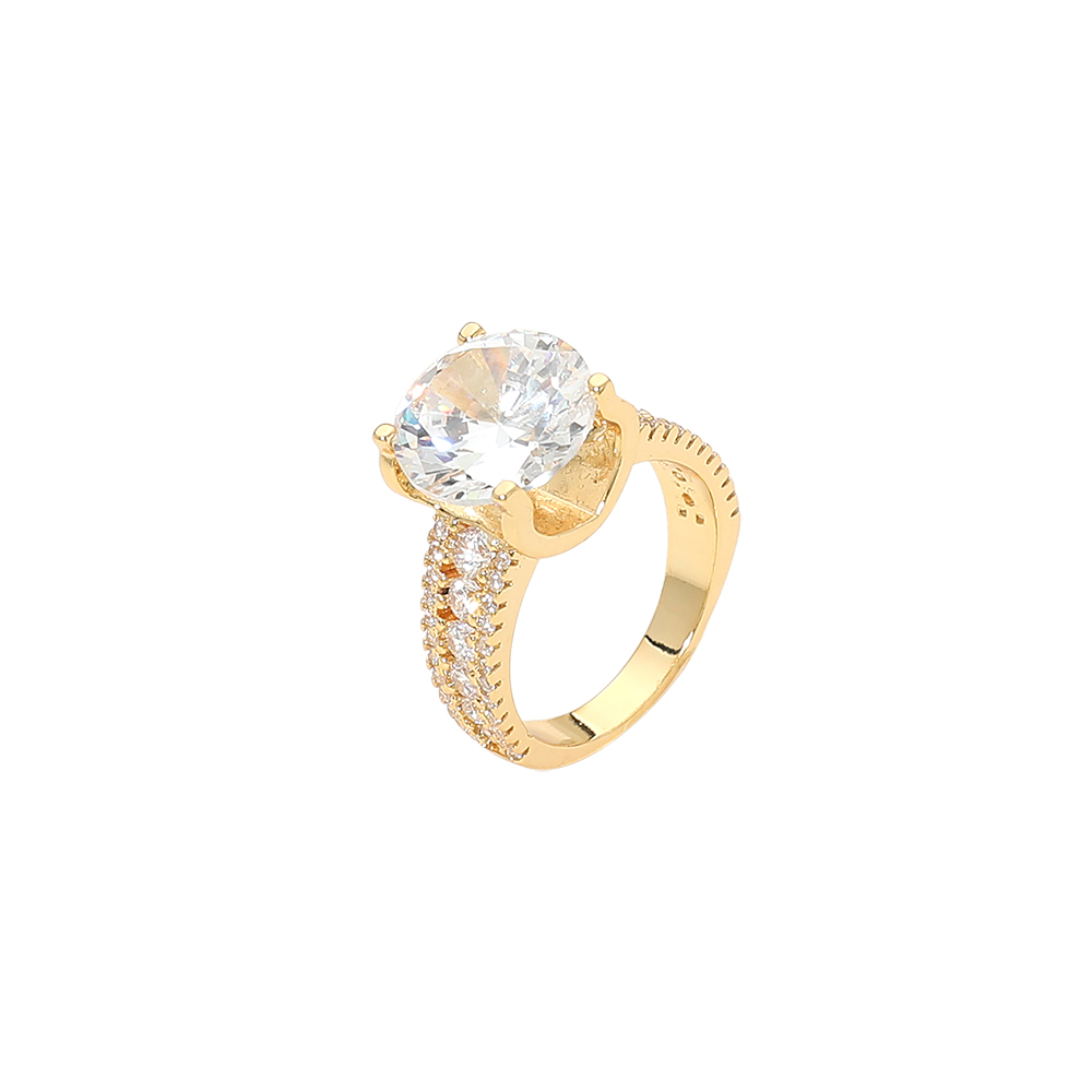 Details • Size : 0.5" H • This statement ring features a bold round cut CZ centerpiece paired with shimmering accent details along the band for added depth and brilliance. Designed to stand out, it elevates everyday outfits and special occasion looks with ease. Perfect worn solo as a focal piece or layered with delicate rings for a polished, fashion-forward style. • CZ Cubic Zirconia • Lead and Nickel Compliant