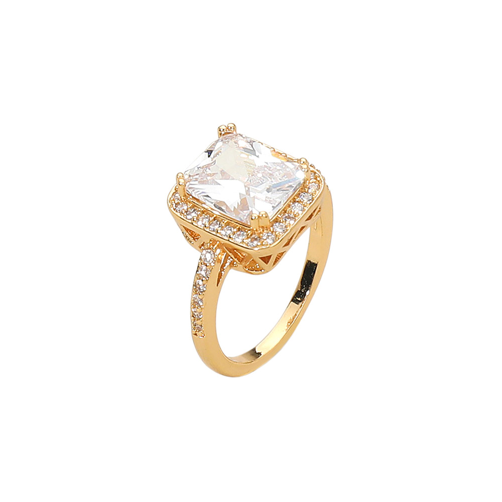 Details • Size : 0.5" H • Glamorous halo ring featuring a bold square cut cubic zirconia center framed by dazzling pave accents on a sleek band. Its radiant sparkle and refined craftsmanship make it a standout choice for engagements, special occasions, or elegant everyday wear. • CZ Cubic Zirconia