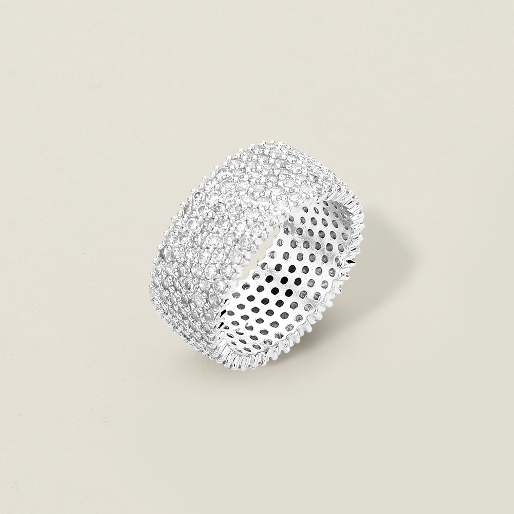 Details • Size : 0.3" H • Elegant wide band ring featuring a full pave surface that delivers maximum sparkle and a bold statement look. Designed with a smooth interior for comfortable wear, this shimmering piece adds refined brilliance to any style and makes a standout accessory for everyday or special occasions.