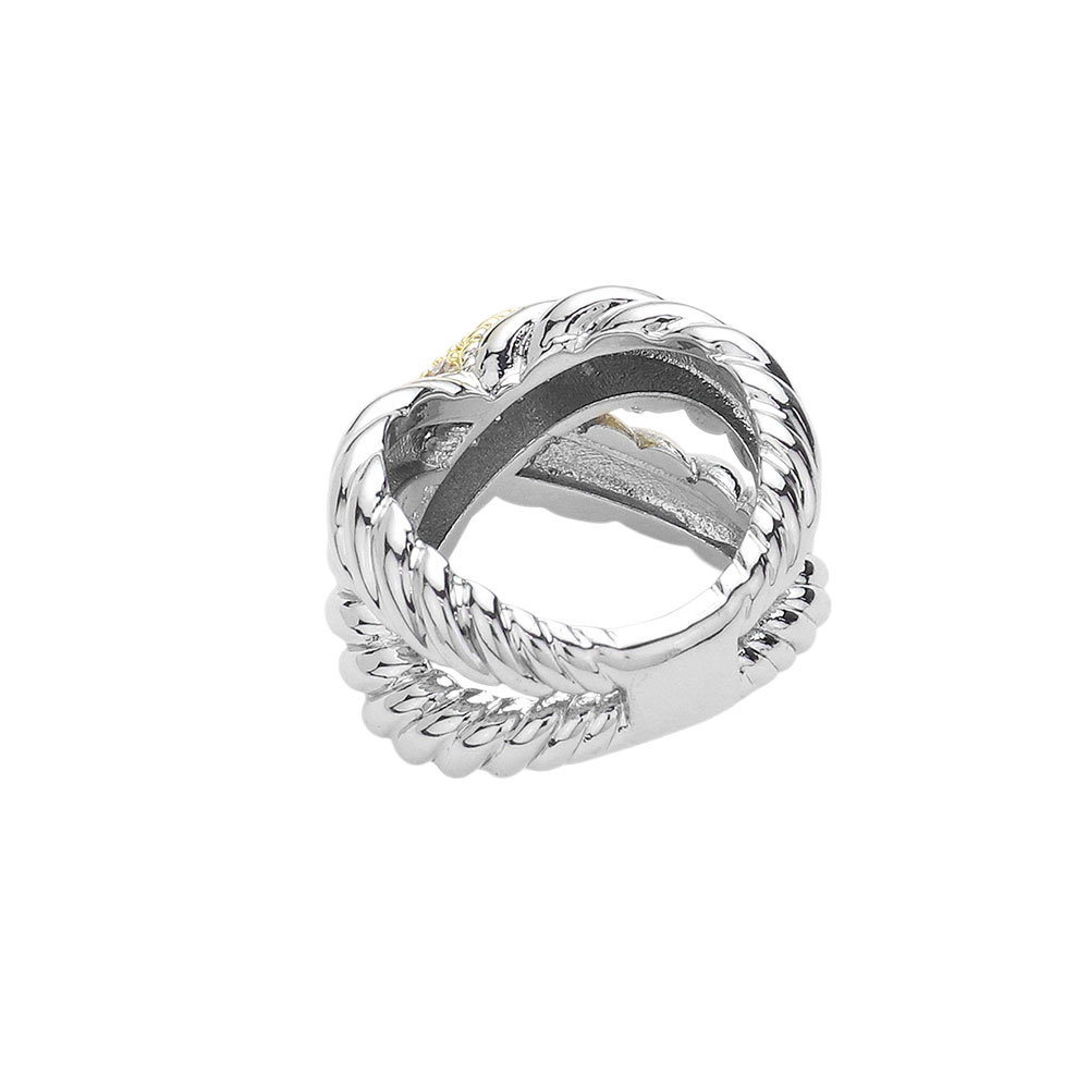 Details • Size : 0.6" H • Sophisticated twisted band ring featuring a sparkling pave center. Perfect for adding refined charm to your everyday or evening look. • CZ Cubic Zirconia