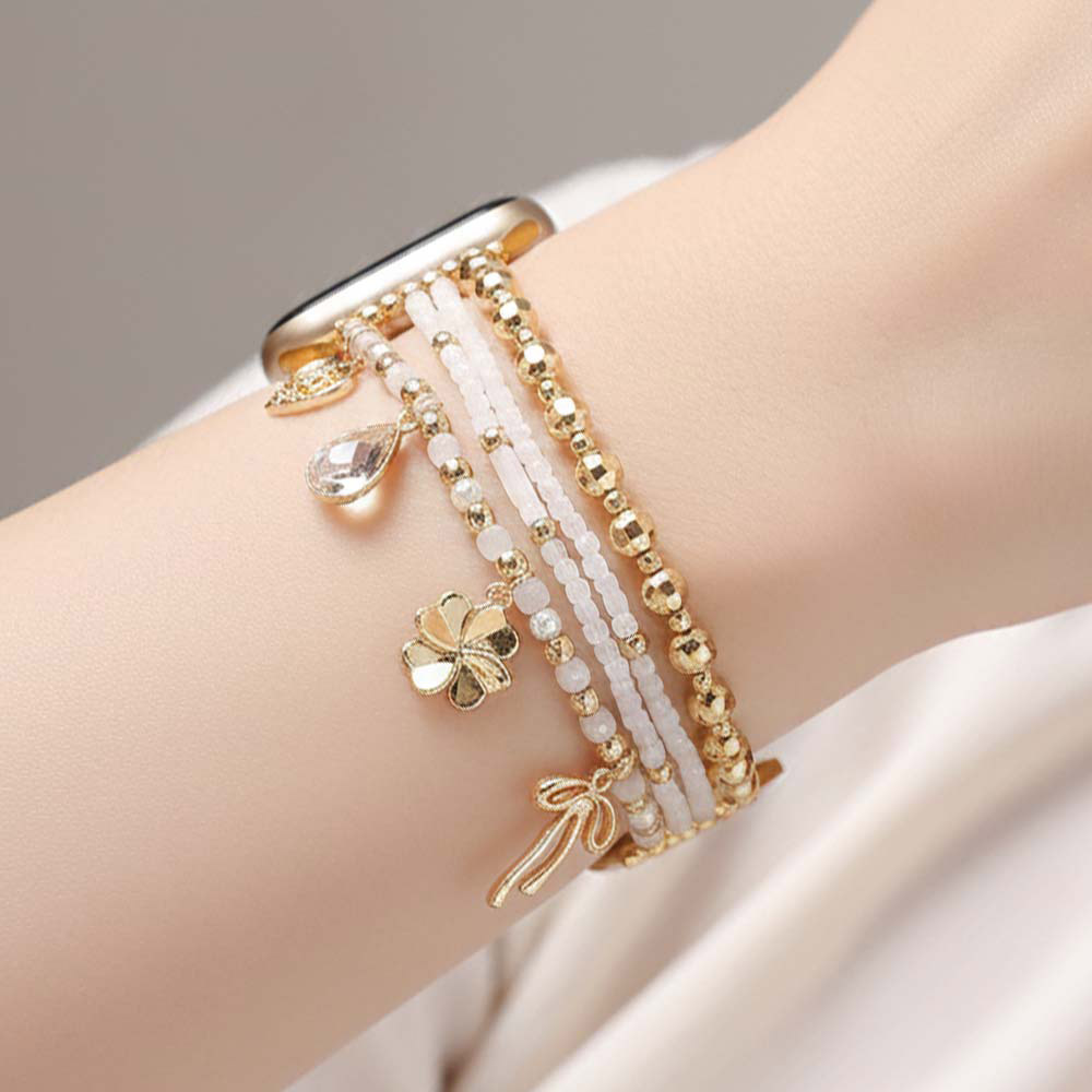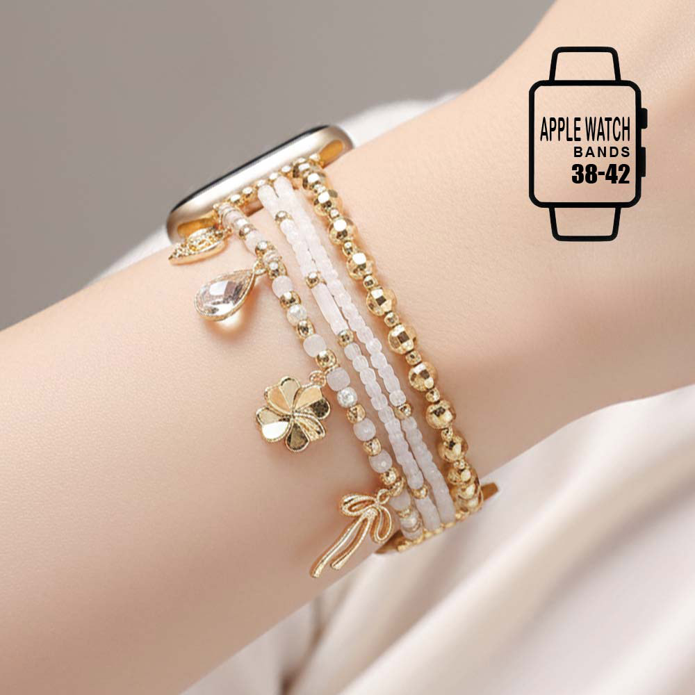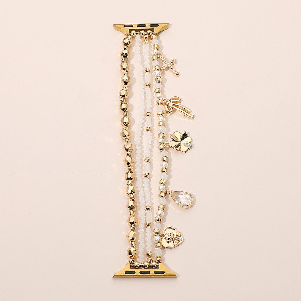 Bow Clover Heart Cross Charm Dangle Floral Ceramic Ball Pearl Beaded Multi Layered Apple Watch Band