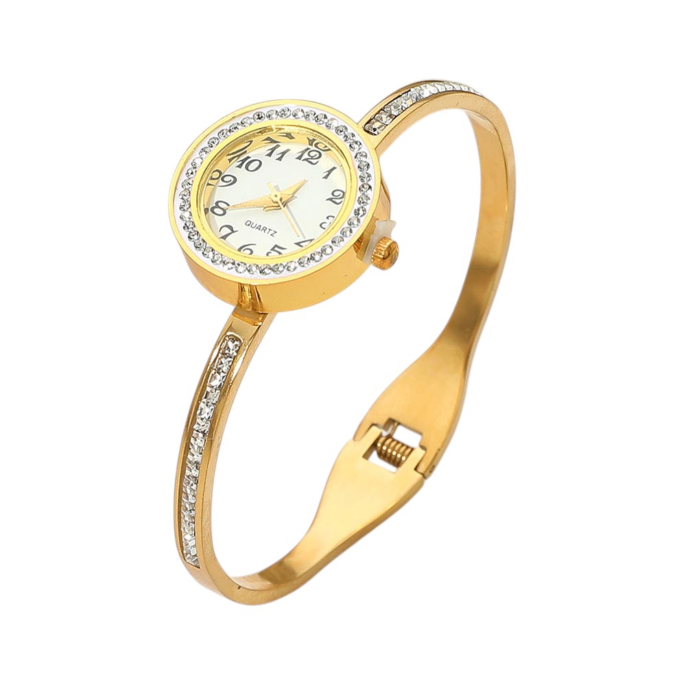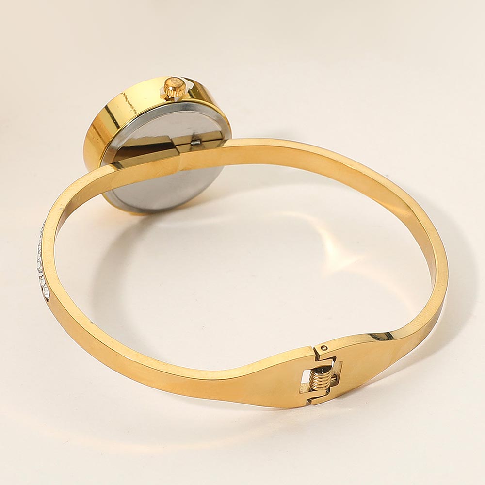 Details • Size : 0.9" H, 2.4" D • Hinged Closure • Water Resistant • Elevate your everyday look with this stunning crystal bangle watch featuring a slim bracelet design and shimmering accents. The elegant round dial and refined quartz movement make it a perfect blend of style and precision, ideal for both casual and formal wear. • Hypoallergenic • Stainless Steel