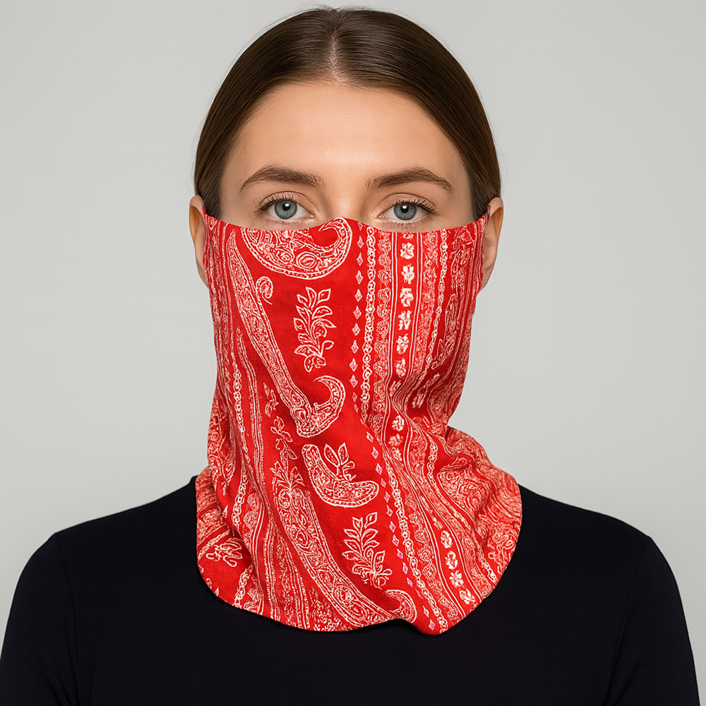 • Add style and versatility with this paisley print face and neck gaiter. Lightweight and breathable, perfect for use as a face cover, scarf, bandana, or headband. A functional accessory designed for outdoor activities, travel, and casual wear.
