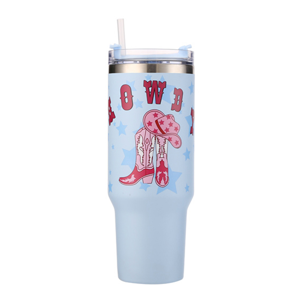 Howdy Cowboy Boots Printed 40OZ Stainless Steel Tumbler With Handle