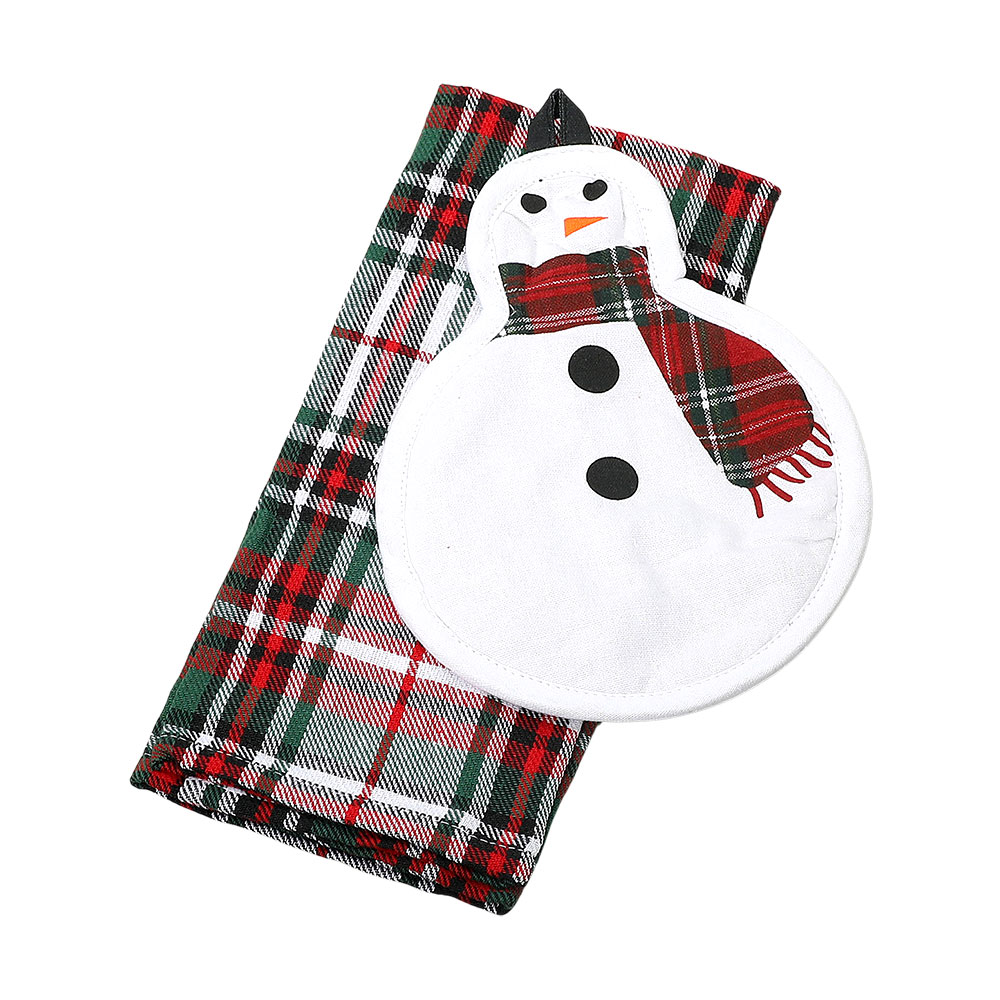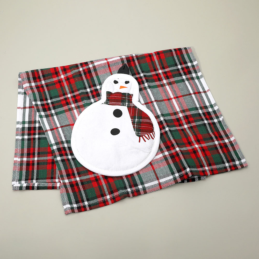 2PCS - Holiday Plaid Kitchen Towel Snowman Pot Holder Set