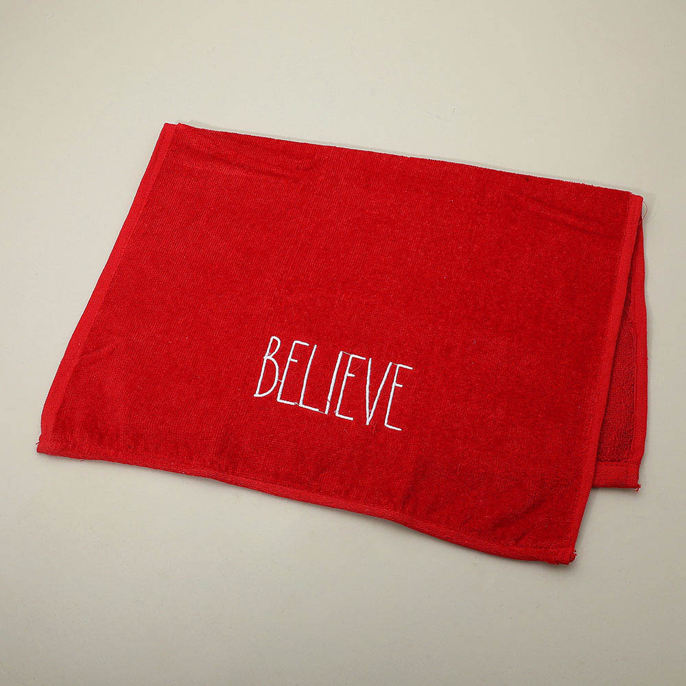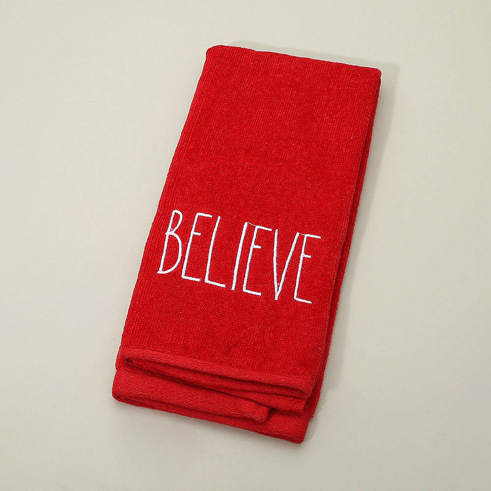 BELIEVE Message Embroidered Festive Holiday Hand Towel