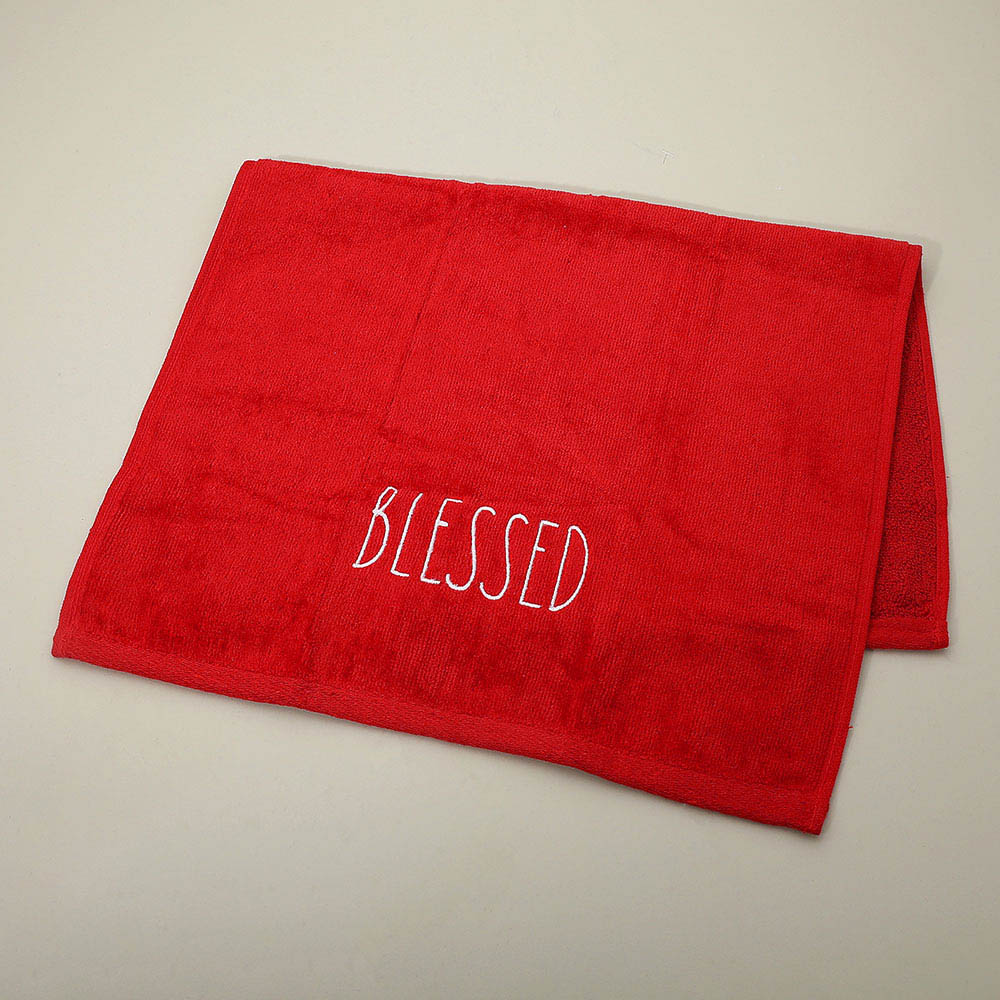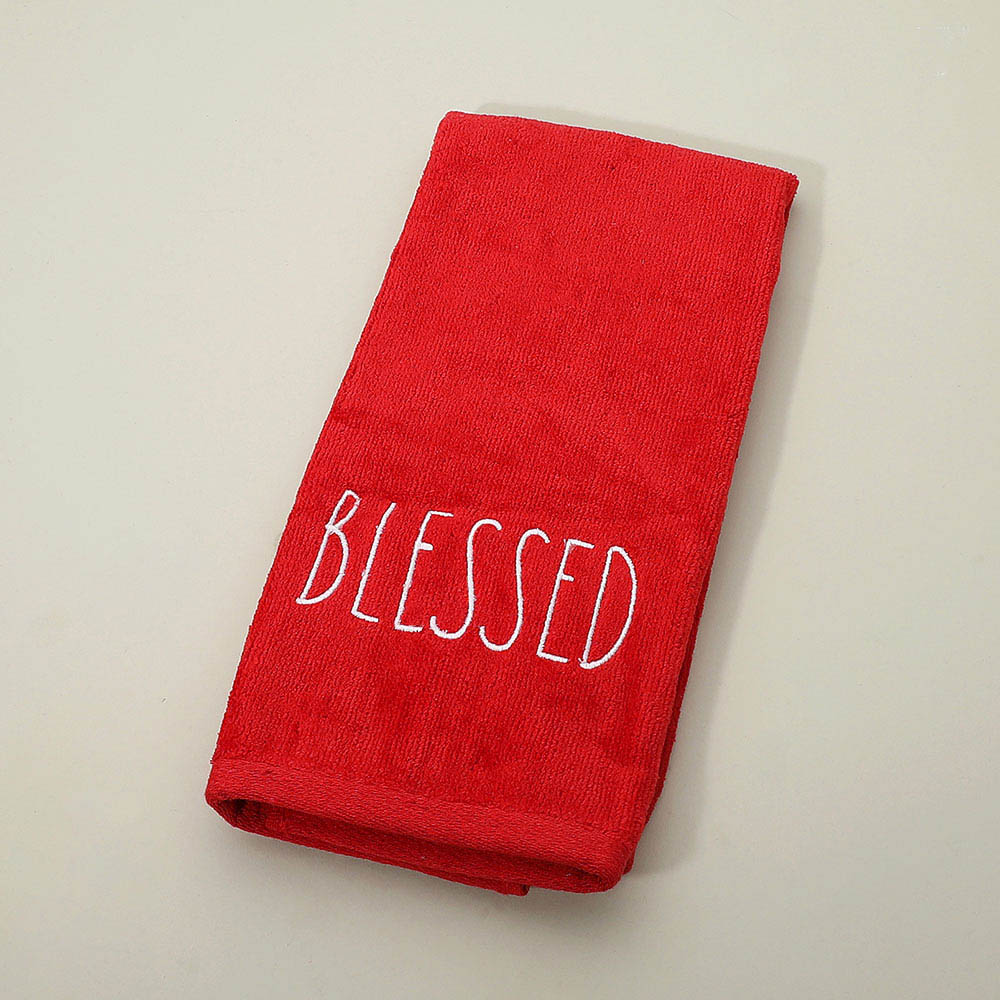 BLESSED Message Embroidered Festive Holiday Hand Towel