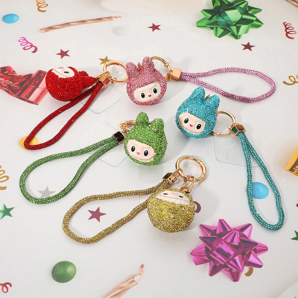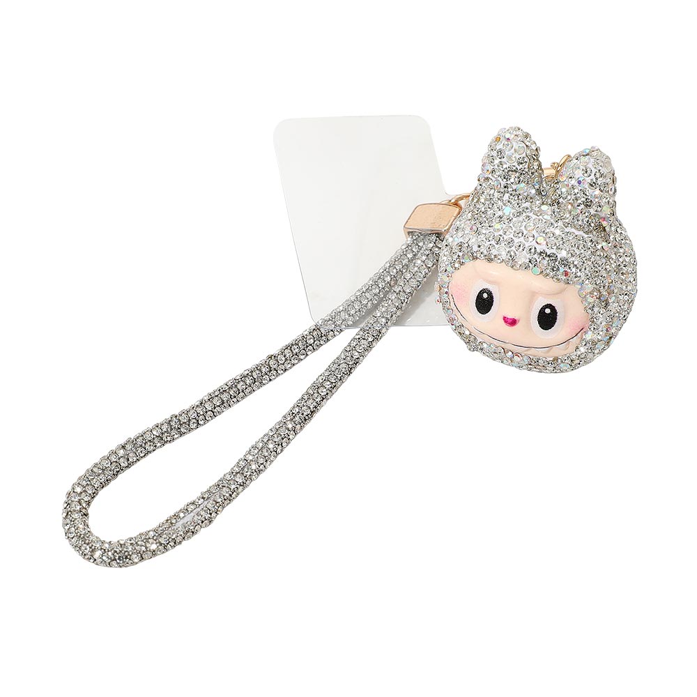 Details • Size : 1.6" X 2.2", 7" L • Adorable monster bunny character phone holder keychain featuring a sparkling figure charm with a matching wrist strap. Perfect for decorating bags, keys, or phones while keeping essentials easy to carry. Fun, lightweight, and ideal as a small gift or personal accessory for everyday use. • Lead and Nickel Compliant