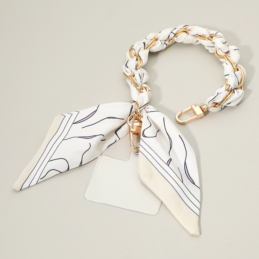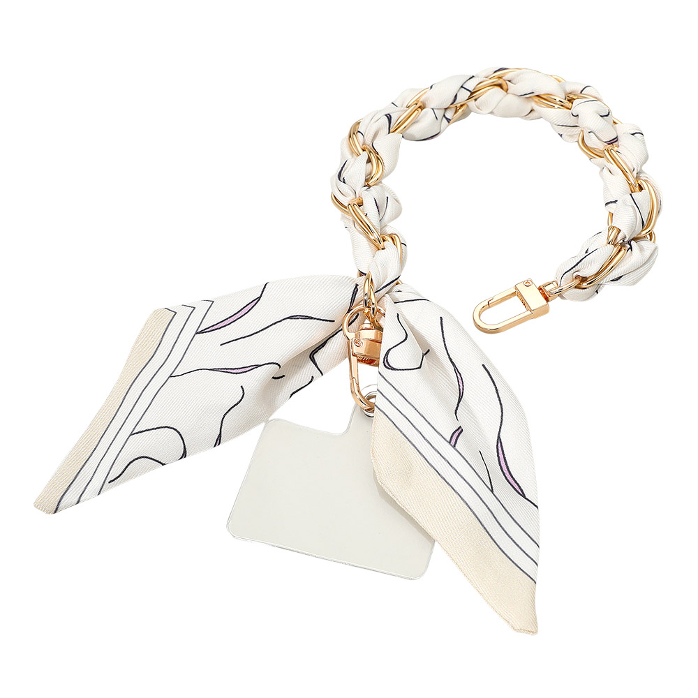 Patterned Fabric Scarf Chain Phone Holder Bracelet Wristlet Strap