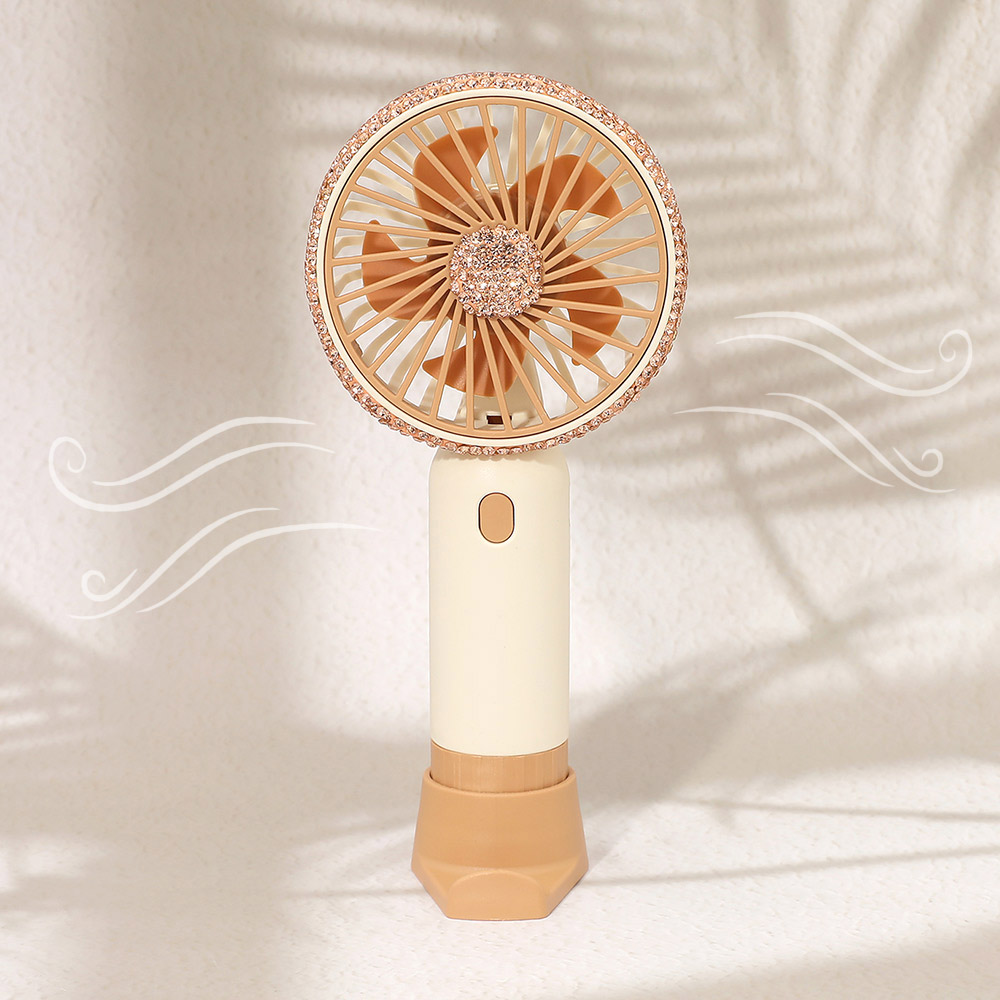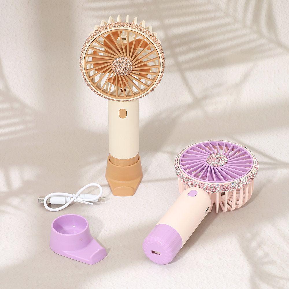 Rhinestone Accent 3-Speed Portable USB Rechargeable Handheld Mini Fan