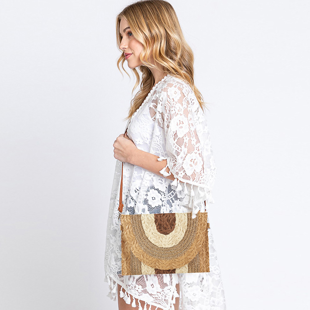 Metallic Lined Multi Color Straw Clutch / Crossbody Bag