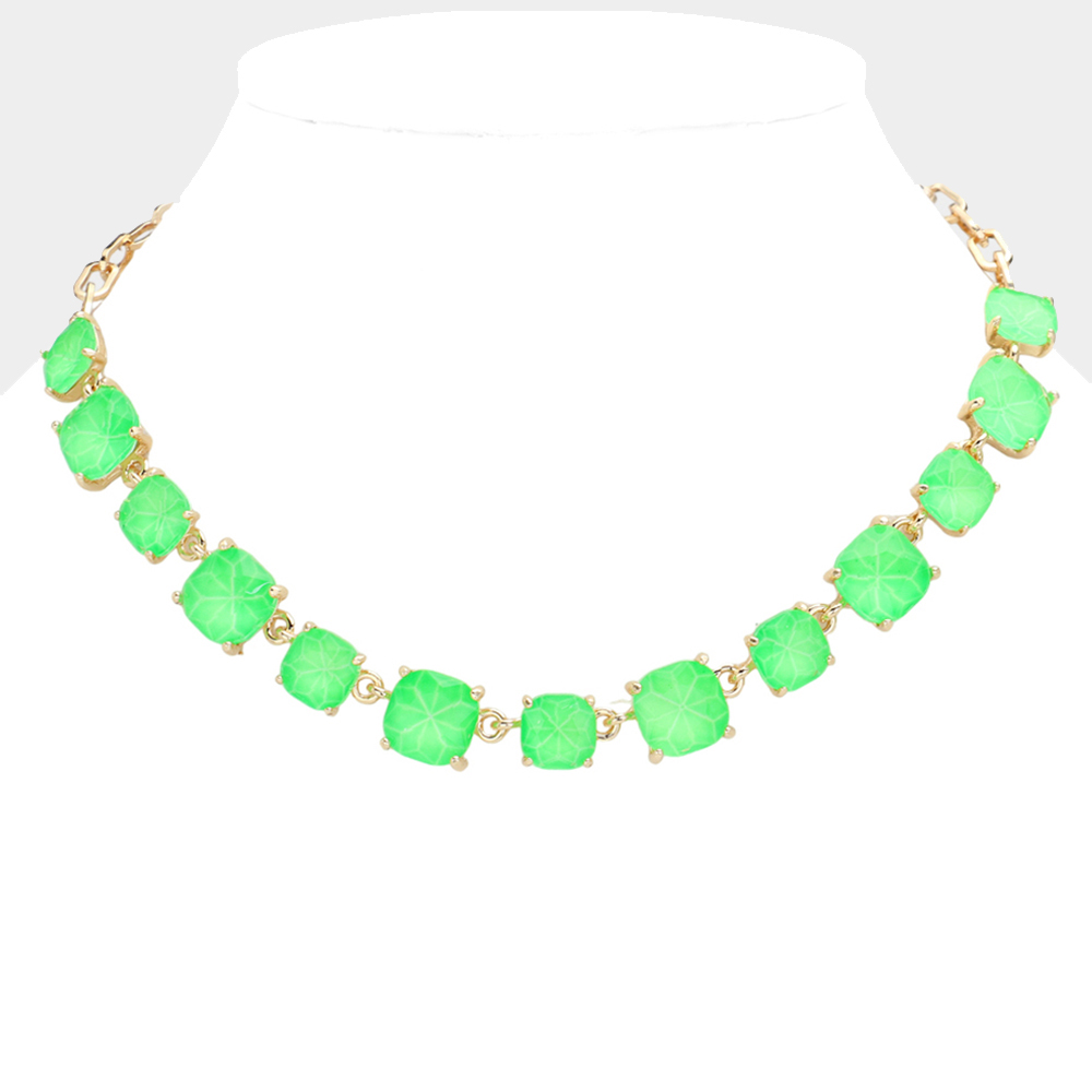 Cushion Square Stone Link Evening Necklace