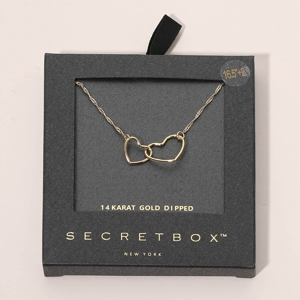 SECRET BOX_14K Gold Dipped Interlocking Open Heart Pendant Necklace SECRET BOX_14K Gold Dipped Interlocking Open Heart Pendant Necklace SECRET BOX_14K Gold Dipped Interlocking Open Heart Pendant Necklace